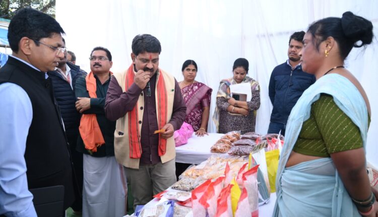 कार्यक्रम में बीजापुर की ग्रामीण महिला स्व सहायता समूहों द्वारा अपने उत्पादों की प्रदर्शनी भी लगाई थी। जिसका अवलोकन करते हुए उपमुख्यमंत्री श्री शर्मा ने उनके खाद्य उत्पादों का भी स्वाद लिया और वनोपजों के बेहतर प्रसंस्करण और बाजार उपलब्धता पर चर्चा की। इस दौरान पंचायत एवं ग्रामीण विकास विभाग के सचिव श्री भीम सिंह एवं संचालक अश्विनी देवांगन, एडीजी नक्सल आपरेशन श्री विवेकानंद सिन्हा, बस्तर कमिश्नर श्री डोमन सिंह, आईजी सुंदरराज पी, कलेक्टर श्री संबित मिश्रा, सीईओ जिला पंचायत श्रीमती नम्रता चौबे, ग्रामों के समाज प्रमुख एवं बड़ी संख्या में ग्रामीण उपस्थित रहे।