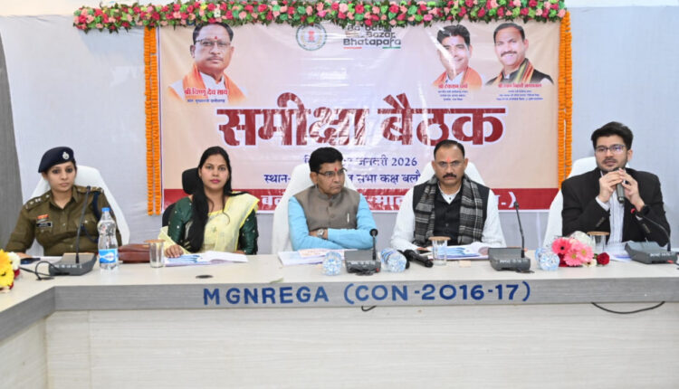 रायपुर: स्वास्थ्य मंत्री एवं बलौदाबाजार जिले के प्रभारी मंत्री श्याम बिहारी जायसवाल ने बुधवार को जिला पंचायत सभाक़क्ष में जिला अधिकारियों की बैठक लेकर विभागीय कार्यो की समीक्षा की। उन्होंने अधिकारियों को केन्द्र एवं राज्य शासन की योजनाओं का बेहतर क्रियान्वयन एवं विकास कार्यों में गुणवत्ता का विशेष ध्यान रखने के निर्देश दिये।बैठक में राजस्व मंत्री टंकराम वर्मा, जिला पंचायत अध्यक्ष आकांक्षा जायसवाल, कलेक्टर दीपक सोनी, पुलिस अधीक्षक भावना गुप्ता उपस्थित थे।