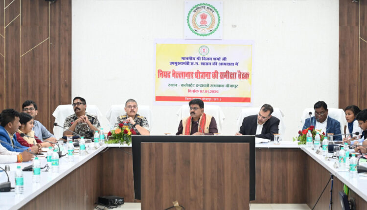 रायपुर: छत्तीसगढ़ शासन के उपमुख्यमंत्री एवं गृहमंत्री श्री विजय शर्मा बीजापुर के अपने दो दिवसीय प्रवास के दौरान बुधवार को जिला कार्यालय सभाकक्ष में जिला स्तरीय अधिकारियों के साथ नियद नेल्ला नार योजनान्तर्गत संचालित विकास कार्यों की समीक्षा बैठक ली। बैठक में उन्होंने विभागवार योजनाओं के जमीनी स्तर पर क्रियान्वयन की जानकारी लेते हुए कहा कि केंद्रीय गृहमंत्री श्री अमित शाह के नेतृत्व में 31 मार्च 2026 तक सशस्त्र माओवाद का पूरी तरह उन्मूलन सुनिश्चित किया जाएगा। इसके बाद बस्तर क्षेत्र में शांति, सुरक्षा और विकास का नया अध्याय शुरू होगा।