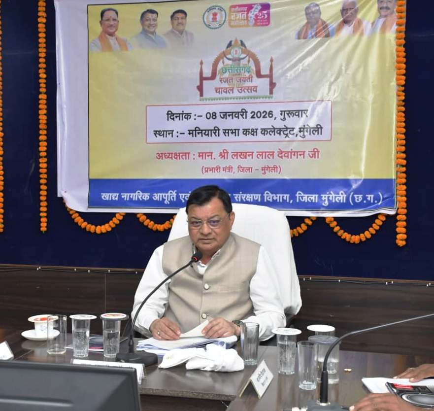 रायपुर: प्रदेश के वाणिज्य एवं उद्योग, श्रम मंत्री तथा मुंगेली जिले के प्रभारी मंत्री श्री लखन लाल देवांगन ने जिला कलेक्टोरेट मुंगेली स्थित मनियारी सभाकक्ष में विभिन्न विभागों की समीक्षा बैठक लेकर शासन की योजनाओं की प्रगति, जनसेवाओं की गुणवत्ता एवं मैदानी क्रियान्वयन की स्थिति की समीक्षा की। उन्होंने अधिकारियों को निर्देशित किया कि आमजन से जुड़े प्रकरणों का त्वरित, पारदर्शी और समय-सीमा में निराकरण सुनिश्चित किया जाए, जिससे जनता में शासन-प्रशासन की सकारात्मक छवि बने। उन्होंने कहा कि शासन की योजनाओं का आमजनों को त्वरित एवं समयबद्ध लाभ पहुंचाने की बात कही। बैठक में मुंगेली विधायक श्री पुन्नूलाल मोहले, जिला पंचायत अध्यक्ष श्रीकांत पाण्डेय, श्री दीनानाथ केशरवानी, कलेक्टर श्री कुन्दन कुमार, पुलिस अधीक्षक श्री भोजराम पटेल, वन मंडलाधिकारी श्री अभिनव कुमार, जिला पंचायत सीईओ श्री प्रभाकर पाण्डेय, एडीएम श्रीमती निष्ठा पाण्डेय तिवारी, अपर कलेक्टर श्री जी.एल.यादव सहित तीनों अनुविभागों के एसडीएम और सभी विभागों के अधिकारी मौजूद रहे।