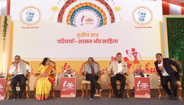 रायपुर: रायपुर साहित्य उत्सव के तीसरे दिन आज वर्तमान में साहित्य सृजन में लगे भारतीय प्रशासनिक सेवा के सेवानिवृत्त अधिकारियों ने ‘शासन और साहित्य’ के अंतर्संबंधों पर गहरा विमर्श किया। लाला जगदलपुरी मंडप में आयोजित यह सत्र मूर्धन्य छत्तीसगढ़ी साहित्यकार और पूर्व सांसद स्वर्गीय श्री केयूर भूषण को समर्पित रहा। रायपुर के कलेक्टर डॉ. गौरव कुमार सिंह इस सत्र में सूत्रधार की भूमिका में थे।