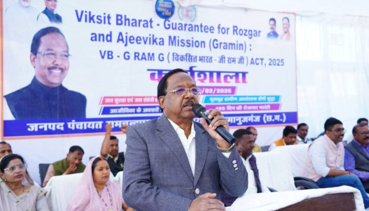 रायपुर: आदिम जाति विकास मंत्री श्री रामविचार नेताम के उपस्थिति में जनपद पंचायत रामचन्द्रपुर में विकसित भारत के संकल्प को जमीनी स्तर तक पहुंचाने के उद्देश्य से विकसित भारत गारंटी फॉर रोजगार एवं आजीविका मिशन (वीबी जी राम जी) विषय पर एक दिवसीय कार्यशाला का आयोजन किया गया।