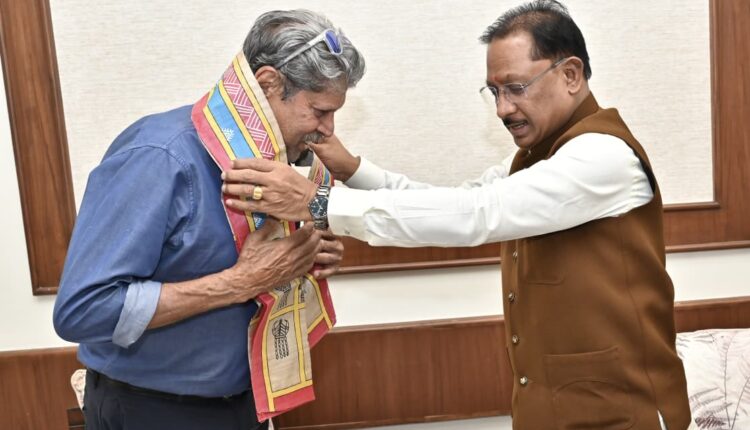 रायपुर: मुख्यमंत्री श्री विष्णु देव साय से आज नया रायपुर स्थित मुख्यमंत्री निवास कार्यालय में भारतीय क्रिकेट टीम के पूर्व कप्तान कपिल देव ने सौजन्य मुलाकात की। मुख्यमंत्री ने श्री कपिल देव को बेल मेटल से बनी प्रतिकृति, पुण्यभूमि छत्तीसगढ़ कॉफी टेबल बुक भेंट कर उनका अभिनंदन किया। मुलाकात के दौरान दोनों के बीच प्रदेश में खेलों को बढ़ावा देने, आधुनिक खेल अधोसंरचना के विकास, अंतरराष्ट्रीय स्तर के प्रशिक्षण केंद्र तथा प्रतिभाशाली खिलाड़ियों को तैयार करने जैसे विषयों पर विस्तृत चर्चा हुई। इस दौरान मुख्यमंत्री के प्रमुख सचिव श्री सुबोध कुमार सिंह उपस्थित थे।
