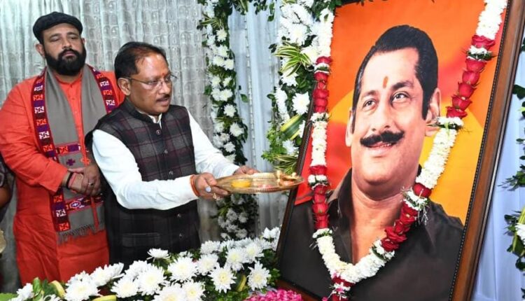 रायपुर: मुख्यमंत्री श्री विष्णु देव साय ने पूर्व लोकसभा सांसद स्वर्गीय दिलीप सिंह जूदेव की जयंती के अवसर पर आज राजधानी रायपुर के मुख्यमंत्री निवास परिसर में उनके छायाचित्र पर पुष्पांजलि अर्पित कर श्रद्धापूर्वक नमन किया।