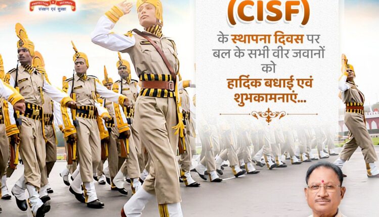 रायपुर: मुख्यमंत्री श्री विष्णु देव साय ने केंद्रीय औद्योगिक सुरक्षा बल (CISF) के स्थापना दिवस के अवसर पर सीआईएसएफ के सभी जवानों को हार्दिक शुभकामनाएँ एवं बधाई दी है।