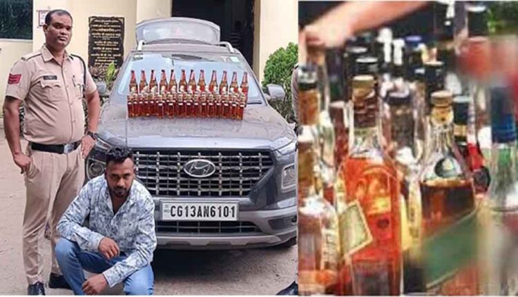 थाना प्रभारी ने इस सूचना के आधार पर मुख्य मार्ग पर नाकेबंदी करते हुए वाहनों की जांच शुरू कर दी थी, इसी दौरान एमसीएच अस्पताल के आगे मेन रोड पर वैन्यू कार को रोका गया। इस दौरान कार चालक ने अपना नाम विवेक महंत पिता स्व. बाबा दास महंत, उम्र 25 वर्ष, निवासी रेलवे बंगलापारा, दशरथ पान ठेला बताया। पुलिस टीम को वाहन की तलाशी में खाकी रंग के 03 कार्टूनों में 96 पाव मैकडॉल नंबर वन अंग्रेजी शराब और 12 बोतल किंग फिशर स्ट्रोंग बीयर जिस पर फोर सेल इन ओडिसा आॅनली लिखा हुआ) बरामद की गई। पूछताछ में यह स्पष्ट हुआ कि आरोपी विवेक महंत अवैध रूप से शराब की बिक्री के लिए इसे परिवहन कर रहा था। पुलिस ने आरोपी के कब्जे से 25.08 लीटर शराब कुल मूल्य 19 हजार 80 रुपये और वैन्यू कार कीमत लगभग 9 लाख रुपये को जब्त किया है। इस तरह कुल 9 लाख 19 हजार 80 रूपये की सामग्री जब्त की गई है। आरोपी विवेक महंत के खिलाफ चक्रधर नगर पुलिस नेधारा 34(2),59(क) आबकारी एक्ट के तहत कार्रवाई की गई है।