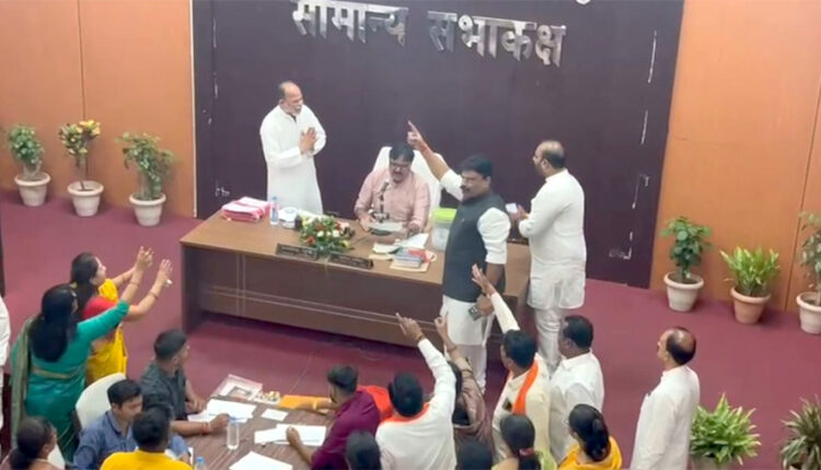 सभापति प्रमोद दुबे ने स्थिति को संभालने के लिए सदन को 10 मिनट के लिए स्थगित कर दिया, लेकिन इससे पहले विपक्षी पार्षद सभापति की टेबल तक पहुंच गए और विरोध प्रदर्शन शुरू कर दिया। सभापति ने कहा कि सदन की मर्यादा बनाए रखना आवश्यक है और उन्होंने पार्षदों से अपील की कि वे नियमों का पालन करें।